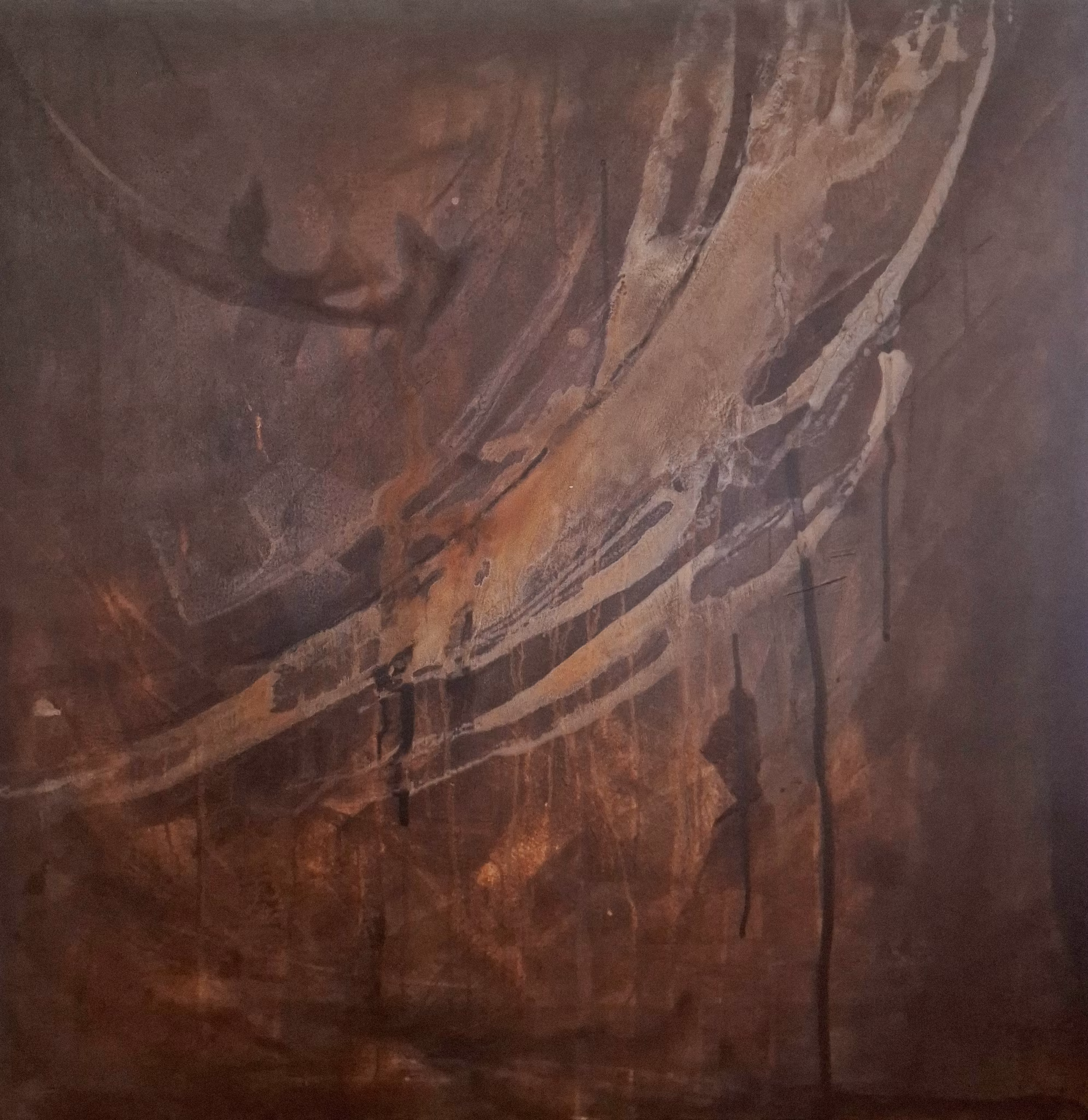 "Muddy Mist" from my serie 'Hippie Road', is an abstract painting that embodies the meeting of earth and haze. Deep, muddy tones swirl with soft layers of lighter mist, creating a mysterious composition full of movement.