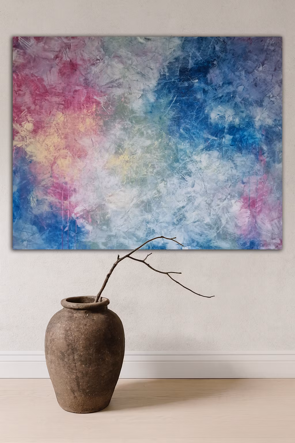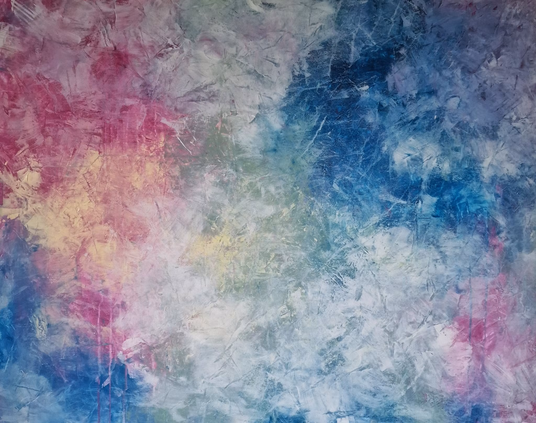 Pride is a vibrant abstract painting that celebrates identity, freedom and the beauty of diversity. With bold layers of color blending into one another, from deep blues to radiant pinks, purples and yellow tones, the canvas radiates both strength and softness.