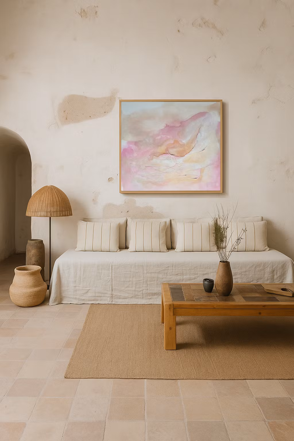 This painting holds warmth, softness and a quiet strength. A reminder of still moments, slow mornings and the beauty that exists in the in-between.