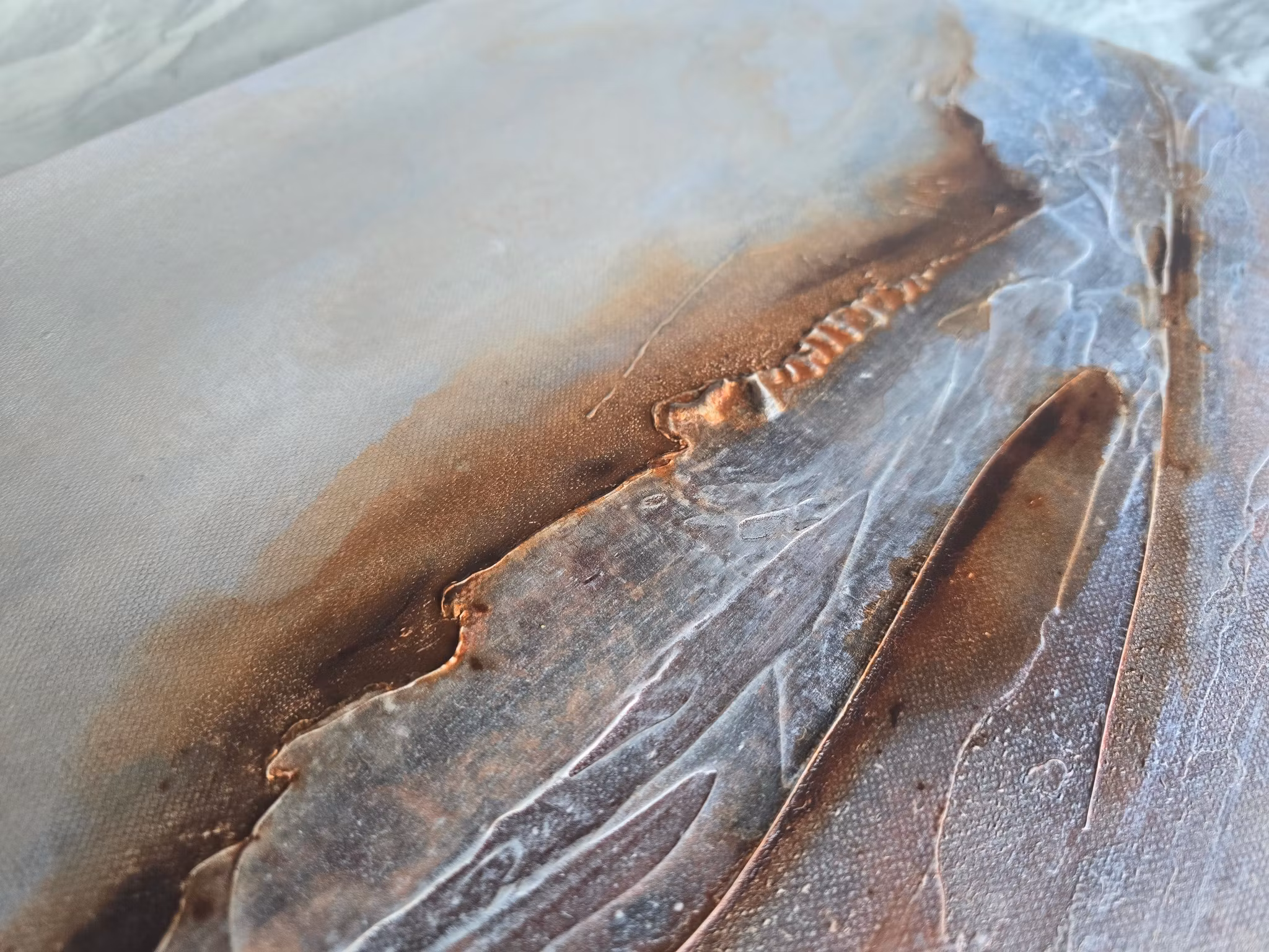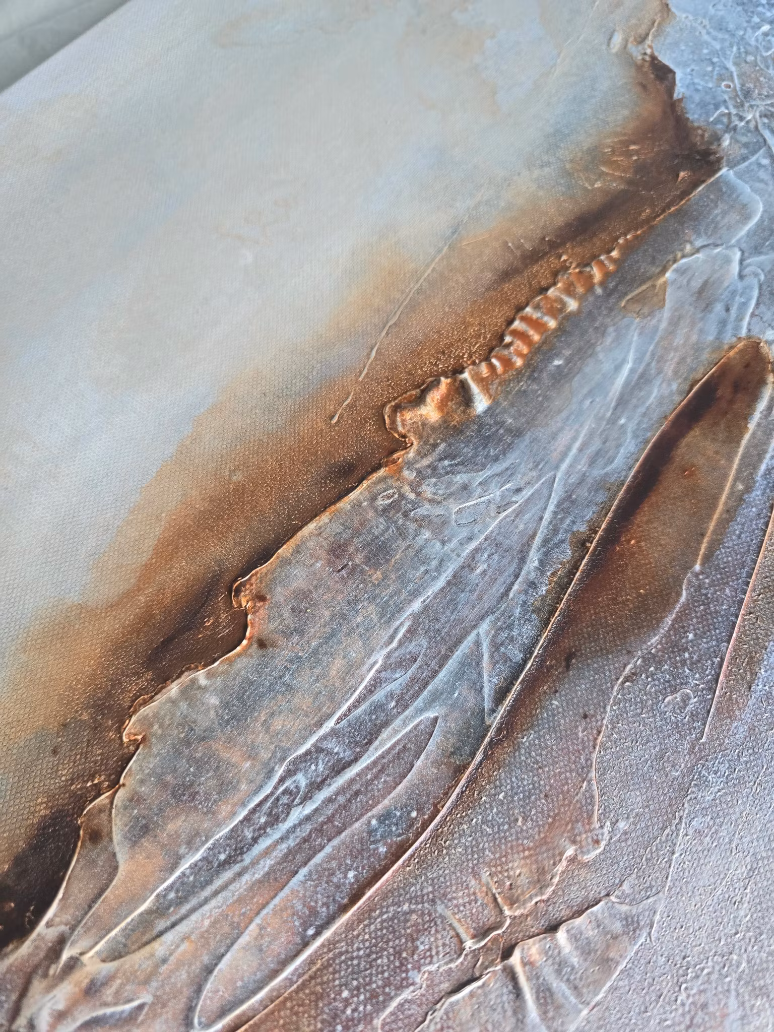 "Misty Ridge" from my serie 'Veins of Earth' is an abstract painting that captures the quiet beauty of nature's raw transitions, where warmth meets cold and ear